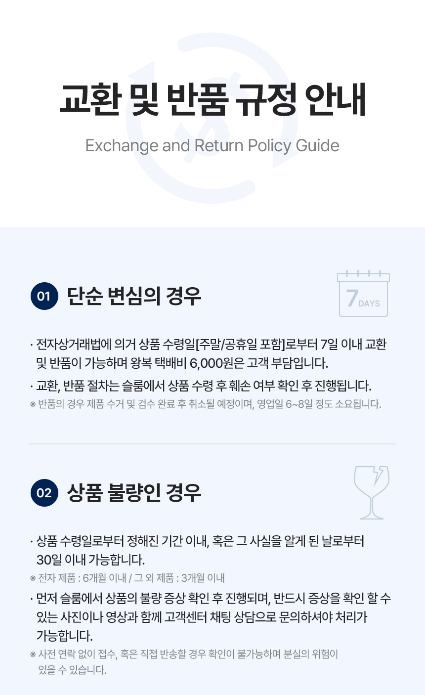 ※ 연휴 기간 앞/뒤로 물류 증가로, 배송 완료까지는 기존보다 영업일 2~3일 추가 소요될 수 있습니다.